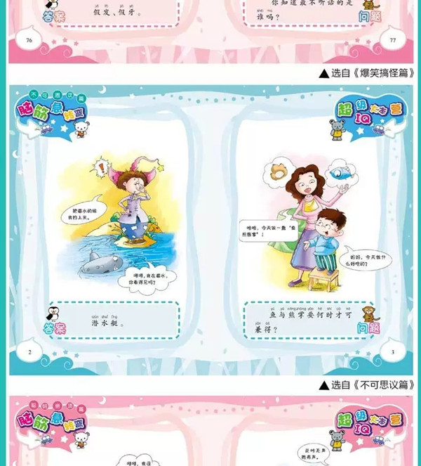 《脑筋急转弯》内容简介:《学生*爱看的课外读物:脑筋急转弯(升级版 彩绘注音版)》封面设计新颖时尚,文章篇幅长短适中,语言清新流畅,配有大量精美插画,特别加注精确注音,非常适合孩子阅读学习。这套丛书不仅能有效地培养孩子的思维能力,还能让他们从阅读中享受获取知识的乐趣,由被动阅读变为主动阅读,潜移默化地塑造孩子乐观、坚强的性格。