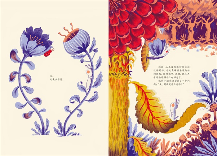 这是一本富有哲理和艺术性的绘本。有一只毛毛虫,本来生活得很好,从来不用思考自己的人生,但是有一天,它遇到一个人,对它说了一句“多美啊!”。于是,原本浑浑噩噩的毛毛虫决定自己去寻找关于“什么是美”的答案。它遇到了乌鸦、老鼠、鹿等动物,每个动物都告诉了它什么是美,但是马上又会有其他动物提出反对……书中对美这个问题的不断发问,能引起孩子对这一人生重要概念的思考。书中的画面唯美,极具装饰感。