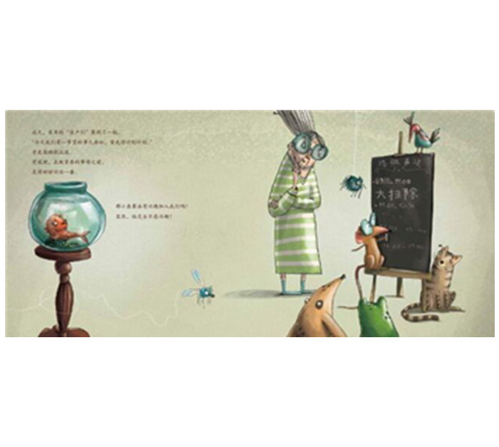 整套绘本的故事和图画风格搞怪诙谐,蕾拉奶奶和9只宠物的造型也不例外。绘者在追求趣味化的同时,其实是按照每只宠物各自的情绪与性格特征来打造外形的,比如在《固执的刺猬米娜》中,米娜满身刺的形象就与她固执倔强的性格形成呼应。