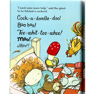 A little ghost tries to give Lydia Lou a scare, but he can't even wake her up. So he fetches his noisy animal friends to help.Mew! Moo! Too-whit too-whoo!Wake up do, Lydia Lou!