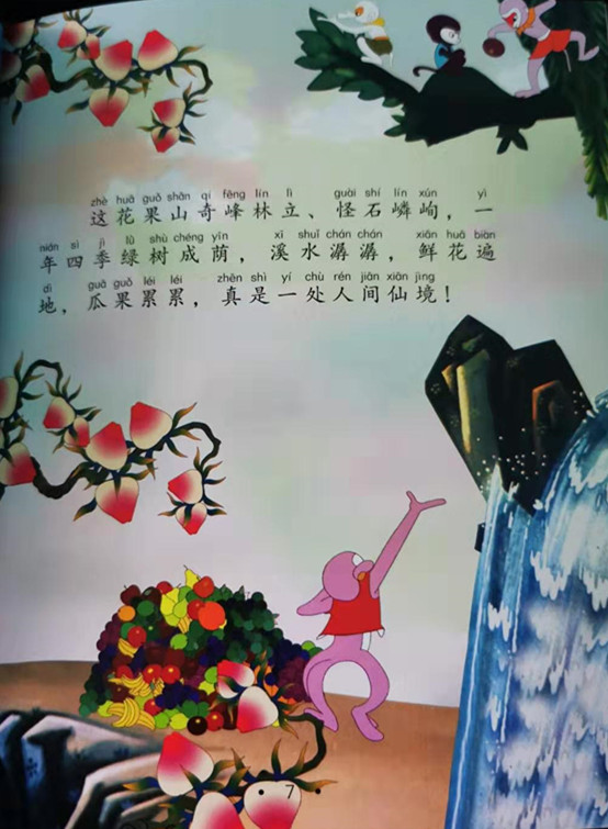 小猴子们待在那里不动,孙悟空伸手向前一探,却探了个空。他定睛一看,小猴子们不见了,眼前只是一片狼藉。