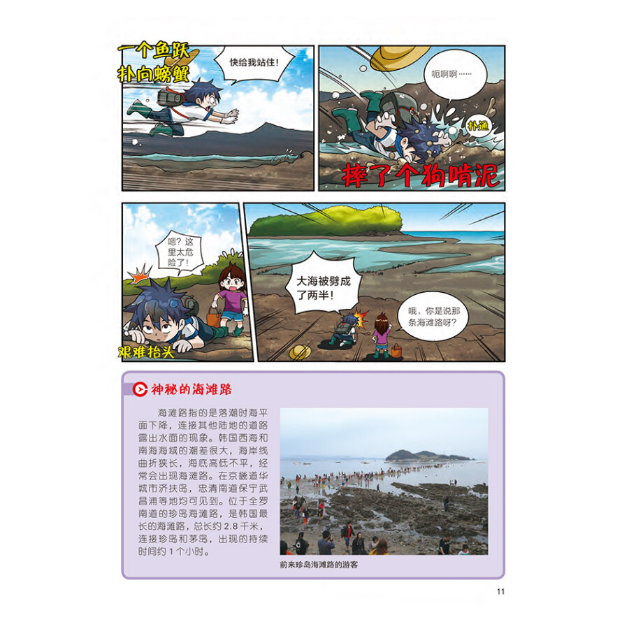 《大英儿童漫画百科》采用新的图形和绘制技术精心打造,以孩子们的兴趣点为中心,完整构建十大知识领域,全方位满足少年儿童的知识需求。它以《大英百科<滩涂环游记>》的内容知识为基础,通过色彩鲜明、形式活泼的漫画和生动有趣的故事,为孩子深入浅出地讲述相关科学知识。本知识领域主要讲述构成世界的物质和能量。《滩涂环游记》就是该套漫画百科之一,主题是滩涂。《滩涂环游记》共分四部分:什么是滩涂、滩涂的种类和生物、滩涂与人类、拯救滩涂。