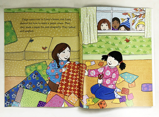 作者Grace Lin是美籍华人,虽然从小在纽约长大,但对中华传统文化有着深深的认同感。在她的育儿经验里,她认为,越早接触了解中国传统文化对孩子越好。于是她创作了一系列以亚洲风情为基调的英文绘本,其中有知名的新年系列。而Lissy`s Friends虽然不是节日绘本,但全书运用的日本风千代纸元素,依然可以让小读者感受到浓浓的传统文化气息。