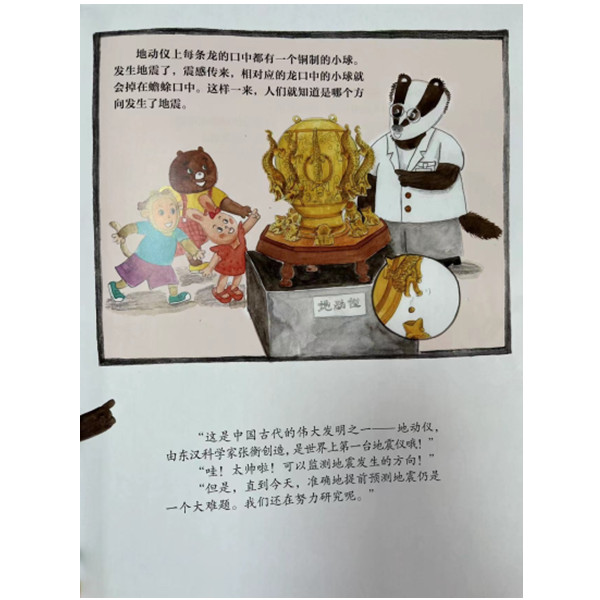 幽默的狗獾爸爸来喽!地震研究员狗獾爸爸用深入浅出的方式告诉兔小雪、熊小贝、猴小萌,什么是地震,地震的成因,地震的分级,地震发生导致的一系列效应,发生地震时我们该如何保护好自己,地震的征兆和对地震的测量。故事的最后还贴心地送上了一个实用的家用应急箱,方便家长们按需准备,以备不时之需。 《探索吧,地震!》作为一本科普图画书,讲文学叙述和科学知识融合在一起,通过活泼的人物形象,有趣的情节,让小读者在故事阅读中轻松学习了地震的知识以及实用性很强的地震应急技能。