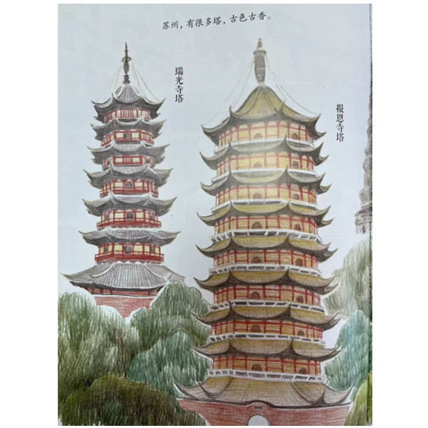 内容科学严谨,知识点丰富,画面中有很多隐藏细节和延伸内容供读者挖掘,有料有趣。 将苏州的城市历史和关于建筑、文物、非遗的科普知识相串联,古今交融,便于阅读和理解记忆,帮助孩子用图像的方式,建立自己的历史知识体系。 结构精巧。通过巧妙的结构安排,将苏州的城市特点和江南文化的韵味有效地传达了出来,如“苏州有很多桥”“苏州有很多塔”“苏州有很多建筑”“苏州有吃不完的美食”等,非常适合孩子的理解与阅读,