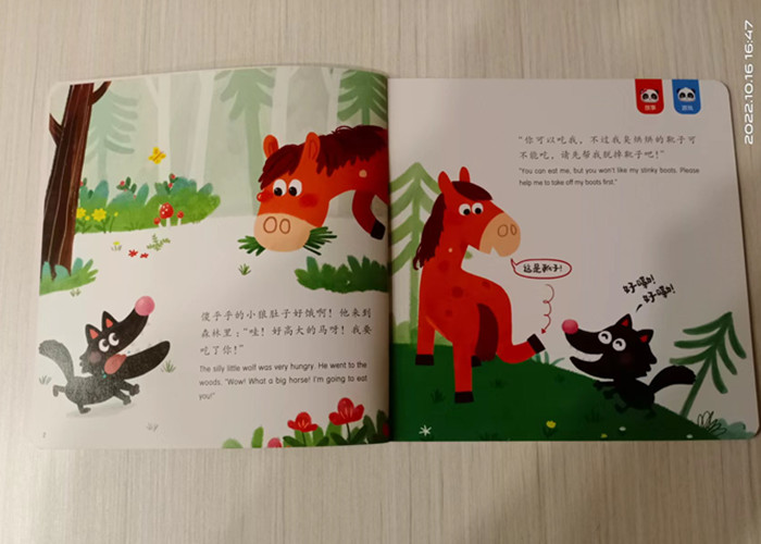 傻乎乎的小狼肚子好饿啊!他来到森林里:“哇!好高大的马呀!我要吃了你!”