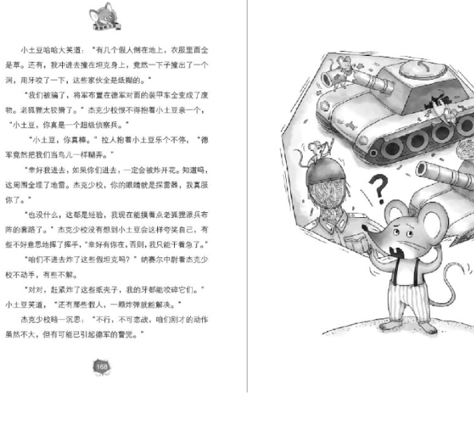 《老鼠的圣诞节》是“动物童话疯狂的土豆”系列丛书的第八部,在上一部《小熊独立日》中,小土豆在草原动物大军的帮助下,为自由而战,终于救出了被囚禁的熊和*。从马达加斯加返回的途中,时空突然逆转,小土豆意外被卷到了第二次世界大战的战场上。身陷北非大沙漠战场之中的小土豆和白衣少年在一起……如果少年拉人死掉的话,小土豆就再也回不到原来的时空……小土豆和少年拉人能否在炮火连天、硝烟弥漫、一片焦土的战场上活下来?白衣少年拉人到底是谁?在这个战场都发生了什么不可思议的事情?