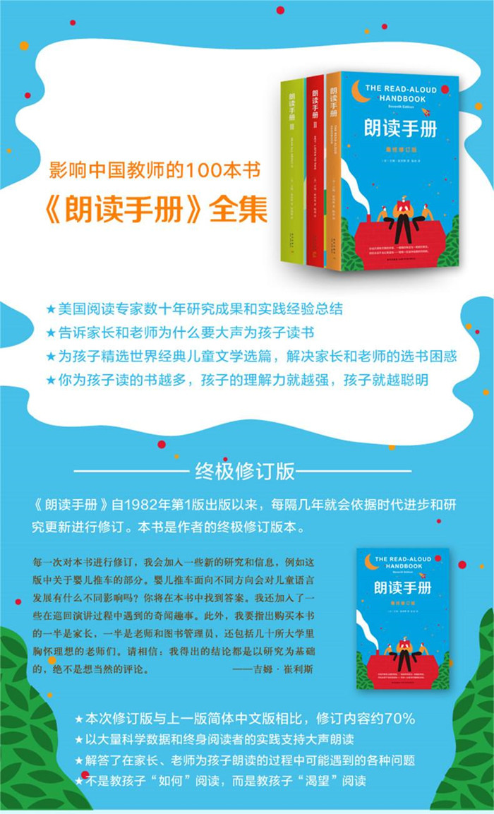 读了这本书,还会有家长或老师不明白朗读的意义吗?——《纽约时报》 你能送给孩子的珍贵礼物就是让他爱上阅读,每位家长都应该读一读这本书。——美国网站