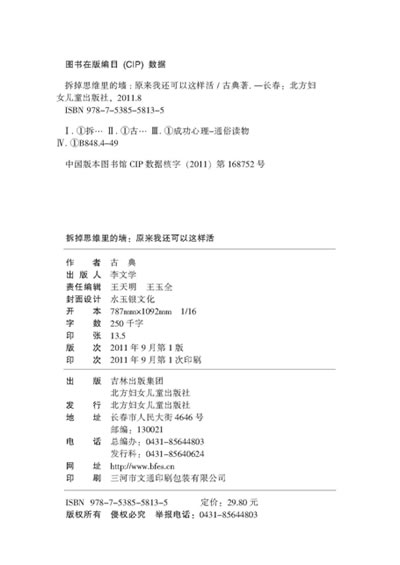 徐小平这样称赞古典:古典的名字,有点像“小平同志”我老人家的名字,听了他的大号,大家都会过耳不忘。古典是一个具有古典气质的美男子,外表好不算什么,但外表好,又能够表现得文静优雅、慈眉善目,他是古典。他曾经是北京新东方国外部托福、雅思、GRE词汇速记首席讲师。听他的课,词汇与故事并进,激情与严谨共飞。一整天下来,学生形容是“累并快乐着”。他是新东方优秀老师,他是我一直关注、期待、鼓励、并希望看到其事业腾飞的朋友。拆掉思维的墙,这是一个非常好的概念:多少寻梦者在一道看不见的陈旧观念、僵化思维的“鬼打墙”面前,踏破铁鞋,无功而返……假如你疑似自己也是这样的人,你需要阅读本书,拆掉思维的墙,打开梦想的窗,走出生命的困境,加速人生的巡航。