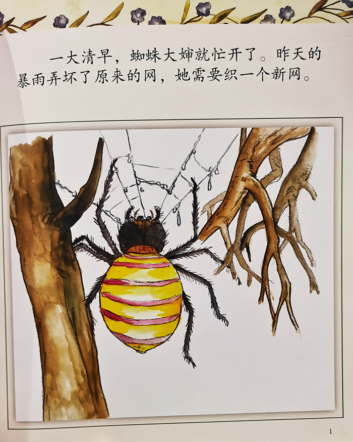 蜘蛛大婶很勤快,一大早就开始织网。期间不少动物路过,和她打招呼,她却很专注,只是礼貌地笑了一笑,没有半途而废。这里可以让孩子学习量词(一只青蛙,一匹马,一头猪,一条狗等),学说动物的问话,培养语言的敏感性。终于,蛛网织好了,成功地抓到了蚊子。故事中出现了记者小兔,并和现代生活紧密结合,将拍的照片上传,更多的动物知道了,想购买蛛网,这就是现代网络的强大功能,能将信息迅速传播。小兔看到了商机,建议蜘蛛大婶开店,蜘蛛大婶愉快地接受了建议,开了蛛网商店。作为老板,蜘蛛大婶没有见钱眼开,坚持蛛网不能被乱用来捉蜻蜓和蜜蜂。小猴来买蛛网捉蚊子,蚊子一只也跑不了,因为蛛网编得又牢又好。这下蜘蛛大婶出名了,蛛网商店的生意好极啦!