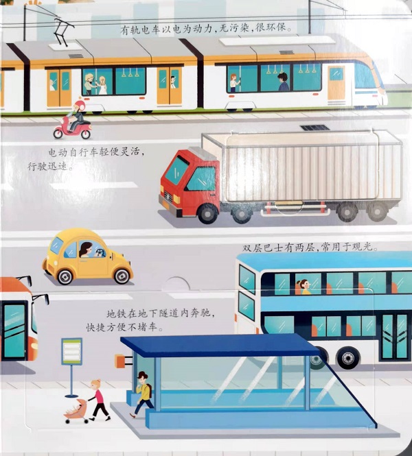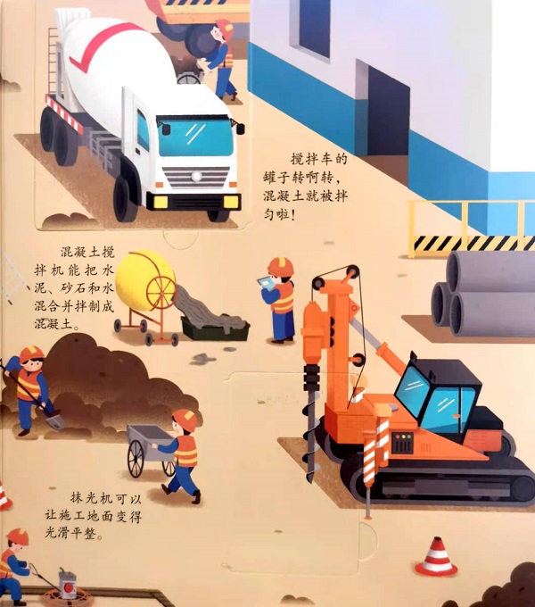 一本带有可活动图片的立体翻翻书,带你了解机械设备和各种交通工具是如何运转的,看看有哪些车轮在滚动、哪些飞机在飞行、哪些轮船在航行。