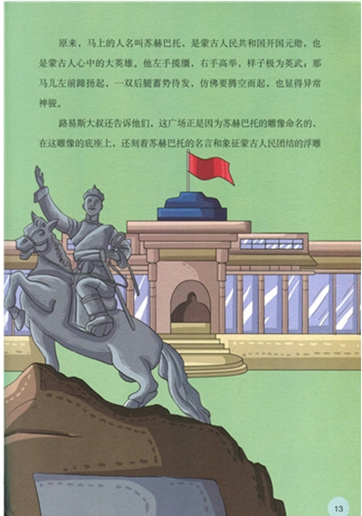 路易斯大叔点点头答道:“乌兰巴托是蒙古语,意思是‘红色英雄城’。” “看来我们来到一座年轻的英雄城了。这里都有些什么呢?好期待哦!”米娜向往地说。