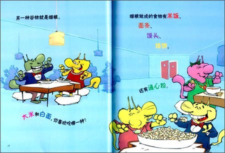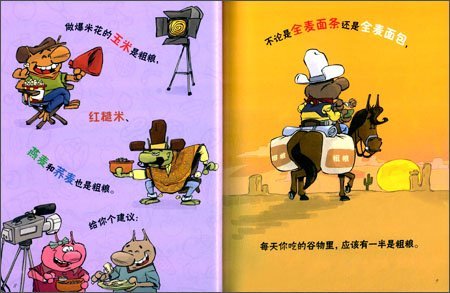 《食物总动员·燕麦、大米和面包:谷物里有什么?》通过一群可爱的卡通形象,向孩子们介绍了有关食物营养的知识!《食物总动员·燕麦、大米和面包:谷物里有什么?》根据美国农业部制定的“我的食物金字塔”原则,为5—9岁的孩子提供日常饮食的指导。作者用轻松幽默的语言让读者了解各种食物的分类、所含的营养,以及每种营养对我们的身体有哪些好处,画家用卡通猫的漫画形象增加了图书的趣味性。书后附表中列出了每天食物的建议摄入量!