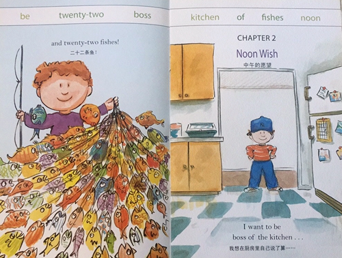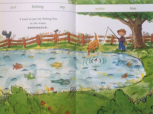 I'm- going- to- Read 分级阅读第二级Level2。中英双语,适合亲子共读或二三年级英语初学者自行阅读。一个小朋友说出了自己在早晨,中午,晚上的三个愿望。早晨钓到好多鱼,中午吃什么自己说了算,晚上爬树摘月亮。。。