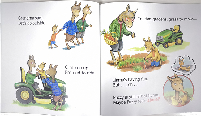 It’s an exciting day for Llama Llama; he’s going to visit Gram and Grandpa Llama and spend the night! His first night away from home….and from Mama. But he makes sure to pack everything he needs. And there are so many fun things to do with Gram and Grandpa. It’s not until he gets ready for bed that he realizes that he’s forgotten something important. Fuzzy Llama! Fortunately, Grandpa Llama has a wonderful solution and soon Llama Llama is having sweet dreams.