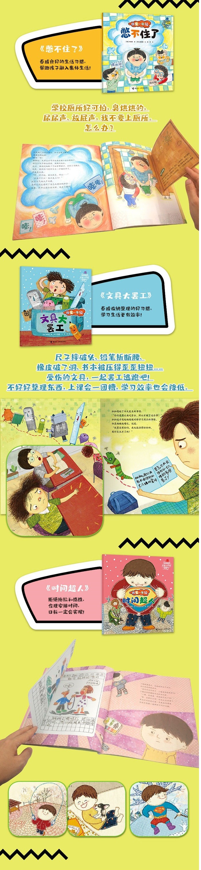 本书旨在帮助孩子们做好幼小衔接和入学准备,快速适应小学生活。套书共6册,每册一个主题,帮助孩子掌握6种重要能力,如怎样做好入学准备,快速适应新学校;怎样有礼貌地和老师打招呼、建立温馨有爱的师生关系;如何一步步克服害羞,变身课堂发言小达人;培养孩子收纳整理、时间管理的好习惯……书里没有生硬的教条,而是以生动的故事让孩子体验学校生活,告诉孩子们在遇到问题和困难时如何应对,让孩子们更快更好地适应学校生活。