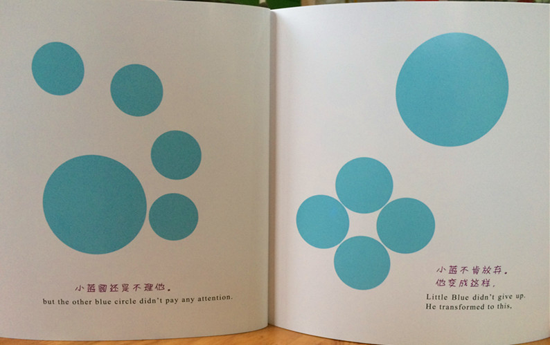 在这则绘本故事中,作者以撕贴的色纸构图:同一角色凭借简单巧妙的背景色彩的变化、方向位置的转换(挪移、拼贴、粘连、断顿等),整个画面空间获得了一种异乎寻常的简洁、流畅和无限延伸的美感。
