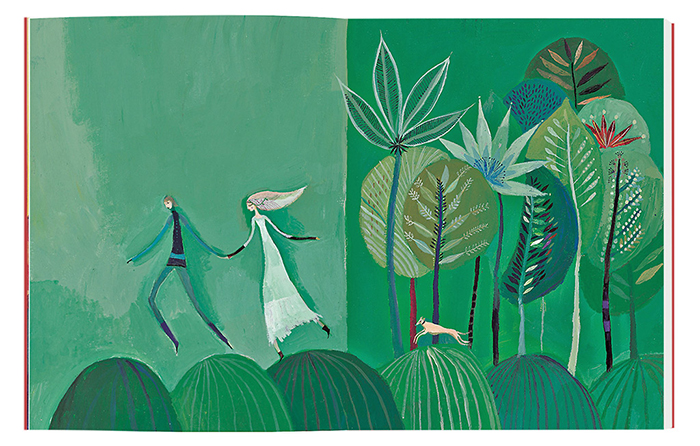半夜,骑士来到一座城堡前,城门大开,无人把守。他走进去,一个人也没有,再往前走,终于来到一户房前,房门紧闭,里面传出轻柔的音乐。