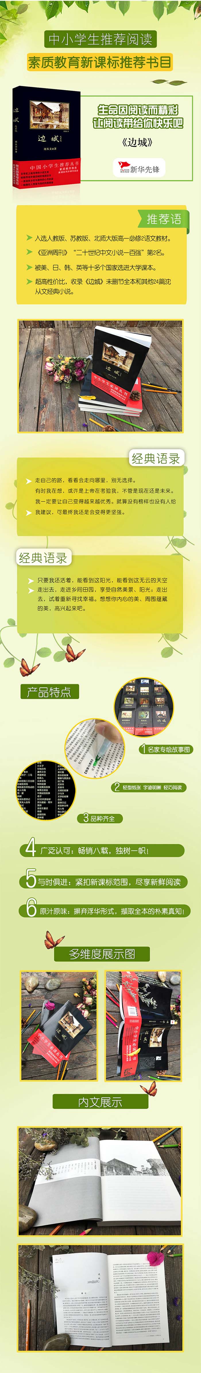 小说《边城》是沈从文的代表作,也是沈从文小说创作的一个高峰。写于1933年至1934年初。这篇作品如沈从文的其他湘西作品,着眼于普通人、善良人的命运变迁,描摹了湘女翠翠阴差阳错的生活悲剧,诚如作者所言:“一切充满了善,然而到处是不凑巧。既然是不凑巧,因之素朴的善终难免产生悲剧”。