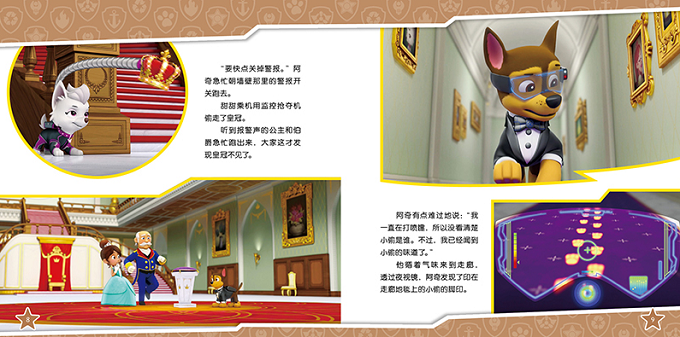 城堡中公主的皇冠下落不明,负责看守皇冠的阿奇也不知去向。莱德和汪汪队赶到城堡,追踪到阿奇的领结狗牌发出了强烈的GPS信号,信号显示阿奇就在城堡的塔楼里。他们跑到塔顶,发现塔顶的门被锁住了,好不容易破门而入,却发现阿奇并不在塔顶,只有他的领结狗牌被扔到了水池里。阿奇和皇冠究竟去哪儿了呢?