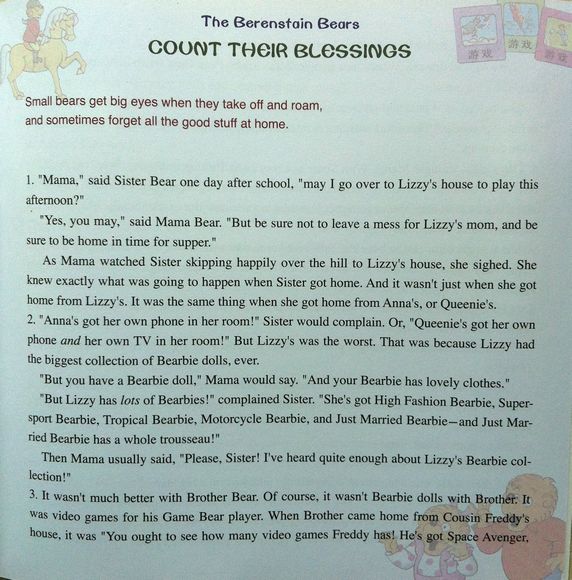 书中除了教你解决这些困扰孩子们的问题,还有许多针对成人的真实写照,让人读了好象看到自己,不禁哑然失笑:比如熊爸爸不让孩子们说粗话,可自己着急的时候却一句句冒出来;不让孩子乱吃零食,自己看见却忍不住吃个不停;带孩子去检查身体,可声称自己从不生病用不着检查身体,而最后却躺在了病床上……这些现象提醒我们,家长们在教育孩子的过程中也需要自我教育。所以我们给这套书的读者的建议是:父母和孩子一起阅读,家长和子女共同成长。