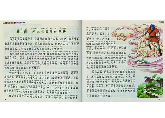 该小说主要讲述了孙悟空出世跟随菩提祖师学艺及大闹天宫后,遇见了唐僧、猪八戒、沙僧和白龙马,西行取经,一路上历经艰险,降妖除魔,经历了九九八十一难,终于到达西天见到如来佛祖,最终五圣成真的故事。该小说以"玄奘取经"这一历史事件为蓝本,经作者的艺术加工,深刻地描绘出明代百姓的社会生活状况。