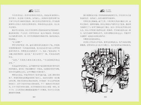 讲述了一个男孩儿独立成长的故事 讲述的是罗拉的丈夫奥尔曼德的故事,奥尔曼德是来自美国纽约州的农庄,男孩儿在书中罗拉生动的描述了奥尔曼德第一天上学的情形,也描述了他获得第一批属于自己也由自己来驯服的小马时那种骄傲的心情,另外罗拉也通过对奥尔曼德成长过程的讲技术提出了对金钱价值的看法,对奥尔曼德而言,五角钱等于在马铃薯田里工作许多小时