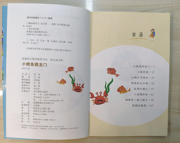 《小鲤鱼跳龙门》一书是儿童文学作家金近的童话集,收录了《小鲤鱼跳龙门》《狐狸打猎人》《小猫钓鱼》等优秀童话。其中《小鲤鱼跳龙门》入选了小学二年级语文统编教材,故事讲述了在鲤鱼的世界里,流传着世界上有一个龙门,鲤鱼只要跳过去就能变成大龙,像云彩一样游到天上去的传说。金色的小鲤鱼带着他的同伴,开始了寻找龙门的旅程,他们不畏艰难困苦,勇往直前,齐心协力,最终跃入了美好的家园,看到了美景,成为世界上最幸福的鱼儿。