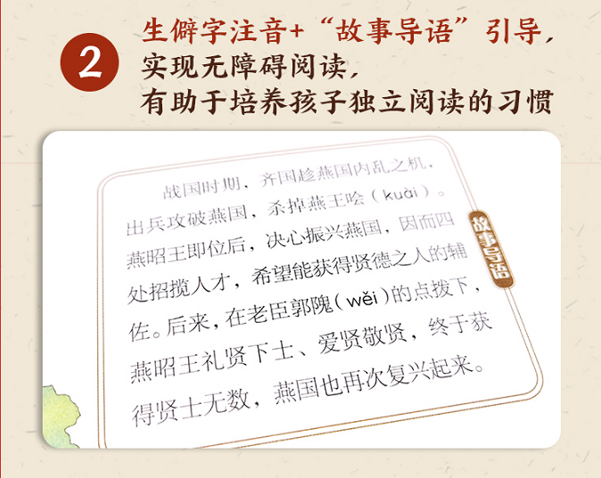 2.每篇故事均配有出处介绍、内容导读,不只是讲故事,更然孩子能够理解故事的含义;