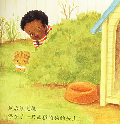 先做好一个纸飞机。用做好的纸飞机让孩子理解位置和空间的概念。在屋里或者屋外扔纸飞机,并且汉语说出飞机飞向哪里,落在哪里。然后翻书的时候就可以把话题引到“书中也有个小朋友在扔纸飞机呢。我们要不要去看看他的纸飞机飞到哪儿去了呢?”这样,小朋友就会自然而然地对书上的内容感兴趣。