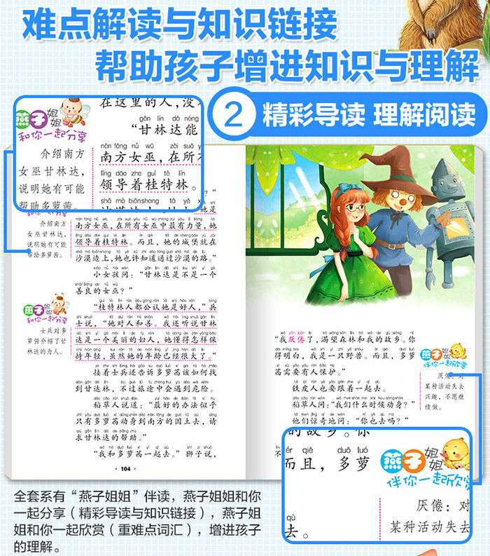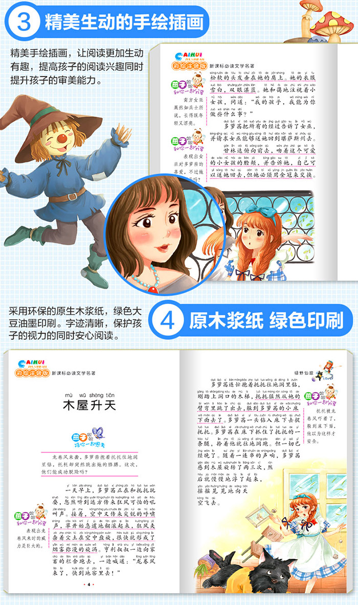 《绿野仙踪》这是一场关于爱、勇气与梦想的奇妙冒险。善良的小女孩、渴望智慧的稻草人、需要心的铁皮人以及一只胆小的狮子,为了各自的梦想结伴而行。在神奇的奥兹王国里扫除了重重困难,最终实现了自己的愿望。《绿野仙踪(超值彩绘全本)》天马行空的想象力和扣人心弦的故事情节寓教于乐,让人在轻松有趣的阅读中学会生活的哲理难怪推出至今一百年间一直是最畅销的童话之一。给心灵颗想象力的种子去魔幻世界开始一次爱与勇气的冒险。