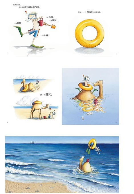 这个孩子显然非常渴望朋友。骆驼理所当然成了他的知音,除了带他穿过沙漠,还一直陪他在海边游泳、玩沙子,直到回家的时刻到来。骆驼温顺周到地将爱、豁达和理解投射到孩子身上,这对我们身为父母的家长来说,是否又有某种特别的暗示?