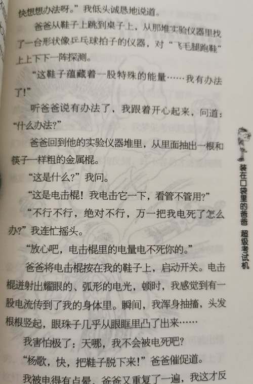 童话中的夸张手法是不可或缺的,它揭示的是生活中的可能性,也就是说可能发生的事,它多有象征的意义。杨歌的爸爸在杨歌妈妈面前矮三分,因为他不能证明自己是优秀的,所以这种夸张是非常合理的。然而,这并不意味着一个普通的人就没有不平凡的想法,就没有这种能力。因为,一个人的成功往往需要多方面的原因,比如说机遇,运气,等等。世界上许多名人不是一生都一名不文而在死后突然名扬四海的吗?杨歌的爸爸因为变成了小矮人,当然不能继续工作了,可见家庭的遭遇对一个爸爸(男人)的影响是致命的。所以,杨歌的妈妈让杨歌的爸爸全权负责杨歌的教育工作。*形象的说法是,杨歌的爸爸成了这个家庭的保姆,或者说是杨歌的随从。杨歌无论去哪儿,口袋里都装着爸爸。
