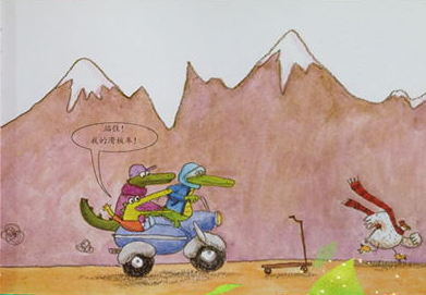 一时兴起,一只鳄鱼想骑上滑板车出去溜溜,没想到滑板车被一只母鸡抢去了!于是,它集结它所有的鳄鱼同伴,不论是敌是友,向偷车贼发起了追赶行动。“追车大军”的队伍不断壮大,可是,跑步可真不是鳄鱼们的强项,一路上,大家使尽浑身解数。上天、下海,五花八门的招数都用上了。鳄鱼们骑上自行车,摩托车,拖拉机,热气球,轮船,直升机,甚至飞机一路追赶。可是*后还是让母鸡逃掉了。