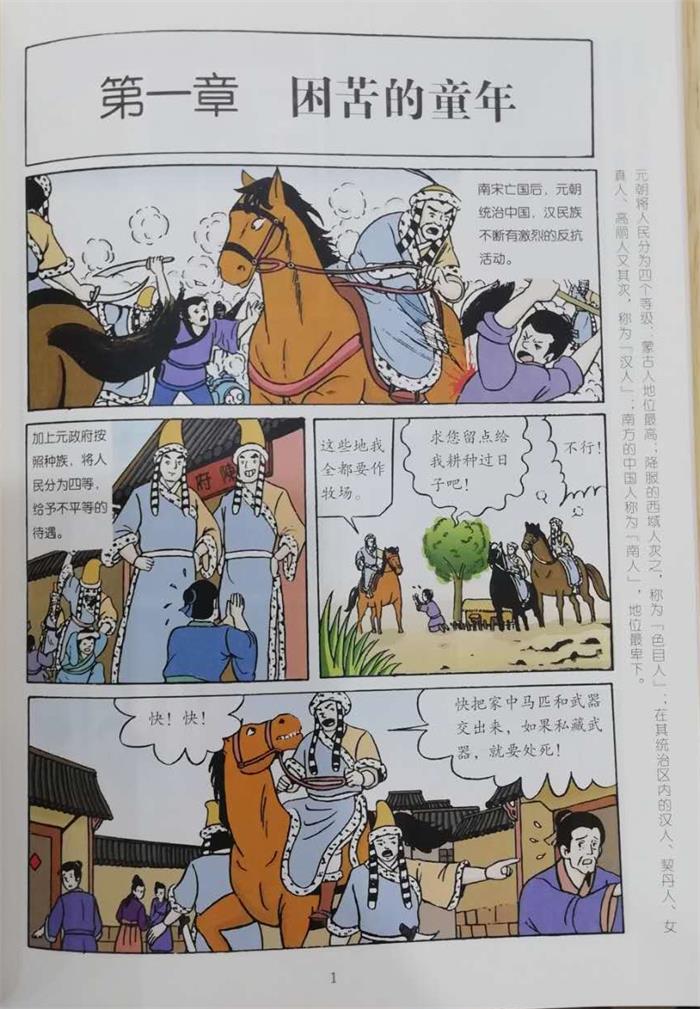明太祖朱元璋出身贫困农家,幼时曾为地主放牛 ,后为维持生汁在皇觉寺做沙弥。游历淮西期问,他 目睹了元朝的残暴统治,在二十五岁时投效郭子兴军 中,加入反抗元朝的行列。朱元璋即位后,实行打击 贪官、兴修水利、普查人口等措施,对后世有着深远 的影响。