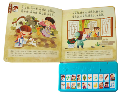 能听、能看、能玩,最新颖的国学启蒙读物。心理学家研究表明:人的记忆力和理解力在人成长过程中的发展是不同步的。一个人的记忆力发展是自零岁开始,一至三岁既有显著的发展,幼儿期是人的记忆发展的黄金时期。背诵是他们的天性,是他们所喜欢和擅长的,如果在这个阶段让孩子多背点传统文化的经典著作和篇目,可以作为一种终身去消化、理解,收益的文化储备。再次,幼儿接受经典教育,接受传统文化的熏陶,在潜移默化之中,吸收五千年古老文明的精髓,使他养成良好的性格与气质。