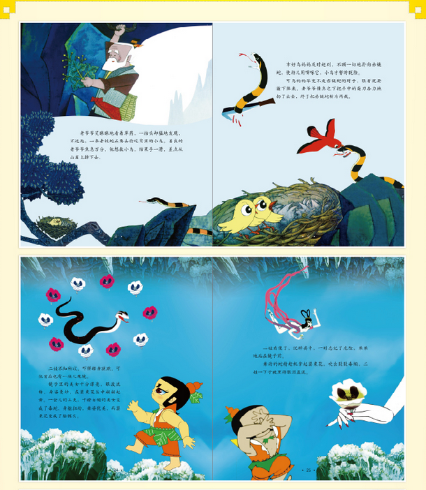 为了推动中国传统文化和原创精品图画书的发展,南方出版社与上海美影厂合作,利用现代电影高科技制作的最新技术,对这些传统经典进行还原和再创作,形神兼备、独特新颖,再现了那个时代的经典。这不仅可以唤起上几代人的美好回忆,更会让现在成长中的少年儿童感受到中国特色动画的艺术魅力,从而有助于他们的健康成长。