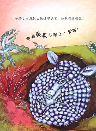 艾丽斯是一只爱睡觉又胆小的小犰狳。白天她通常挖一个洞,然后钻进洞里美美地睡一觉。可是今天,艾丽斯却做了一个大胆的决定,她要去阳光下的森林看看。她会有什么新奇的发现和冒险经历呢?