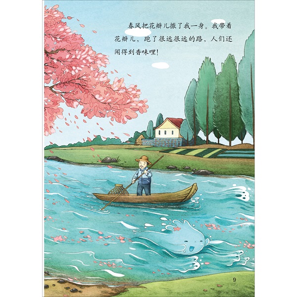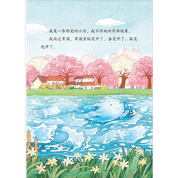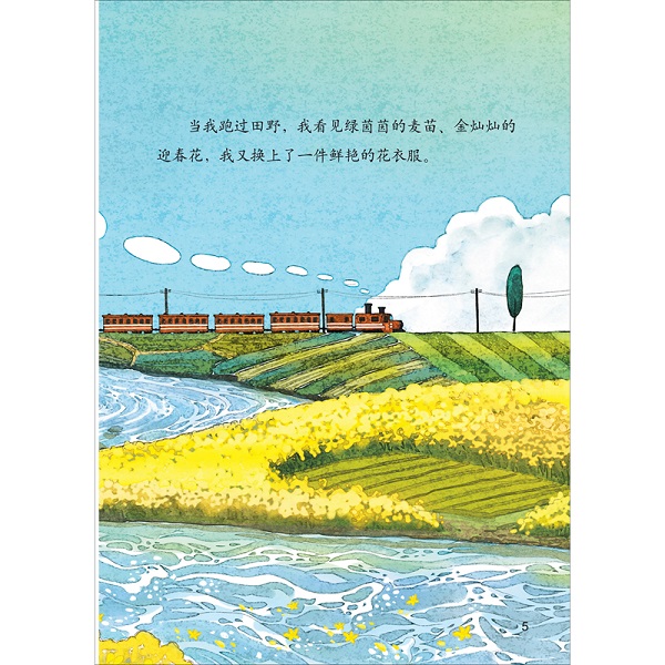 《小河》是一篇语言优美的散文作品。主人公是一条宁静的小河,一直奔流向前,流经山谷、村庄、果园。在前进的过程中,不时还有蜻蜓、鸭子、青蛙与之为伴,嬉戏玩耍。最终许多河流共同流入大海,一幅幅美丽的画卷随之展开。自然优美的语言、生动明艳的图画,帮助孩子进入到诗歌中描绘的那种生机勃勃的田园景致中。从多种感官带给孩子美的感受。现代生活中的孩子和大自然的接触少了,但是孩子可以从书中获得对外界的认知,感受和城市不一样的景象。且在阅读绘本过程中,孩子还能感受到绘本中语言词汇的优美,十分适合亲子阅读。
