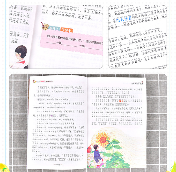 《小学生语文新课标必读丛书:宝葫芦的秘密(美绘注音版)》内容简介:小学生王葆,好吃零食,又爱幻想,奶奶经常给他讲关于宝葫芦的故事,他希望自己也能得到一个像宝葫芦一样的宝贝,可以不费事不操心地获得一切。一天,王葆在钓鱼时偶遇传说中能实现任何愿望的宝葫芦,他想要什么宝葫芦都能信手拈来。他心里想要什么东西,那个东西就会摆在他的眼前。什么金鱼、书、玩具……要什么便有什么。他和同学下象棋,想吃掉对方的某一只棋子,那只棋子会倏地飞进他的嘴里。他想炫耀一下自己的本领,做一个起重机模型,这个模型就在他的房间里出现。王葆很快乐。你是不是也很羡慕呢?考数学时,他望着考卷发愣,别人完成的考卷与他的空白考卷在不知不觉中互相对换,此事被监考老师当场发现,使他羞得无地自容。王葆有了宝葫芦,不但没有得到幸福和欢乐,反而多了不少麻烦和苦恼。他逐渐认识到宝葫芦不是个好东西,便决定与这个“宝贝”决绝。小朋友,你想知道这到底是怎么回事吗?那就快去书中寻找答案吧。