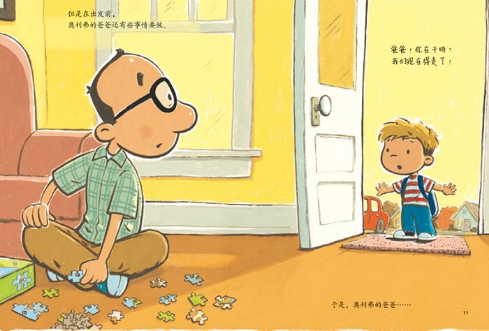 整个夏天,奥利弗都和爸爸待在一起。他们一起玩、一起笑、一起唱歌、一起读书。可现在,奥利弗要开学了!开学那天,爸爸似乎还没做好准备——他舍不得奥利弗离开自己,他突然觉得很紧张,紧张得肚子疼。为了不离开儿子,爸爸还做出哪些让人啼笑皆非的举动呢?