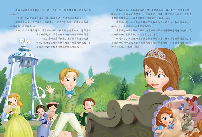 这是一本图画故事书。本书由深受小朋友们喜爱的动画片《小公主苏菲亚》改编而成,讲述了一个平凡女孩经过一系列奇特的经历慢慢学习成为一个真正的公主的故事。配图舒展大气,画面精美细腻,文字改编流畅生动。本书选用精装大开本的装帧方式,哑膜封面,给读者品质之感。