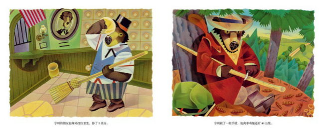 本书取材于梭罗《瓦尔登湖》中的一个片段,用对比的方式刻画了一位向往自然生活的小熊亨利的形象。亨利和朋友要去菲奇堡看风景,亨利宁愿徒步前往,他的朋友选择工作赚钱买车票,他们比赛谁先到达。接下来的画面是对比着呈现:亨利的朋友替人砍柴、打扫、拔杂草、粉刷、搬书柜……*后赚够车费搭上了拥挤的火车;而亨利一路上渡河、做手杖、采集标本、欣赏石头、爬树看风景、坐竹筏……当亨利的朋友气喘吁吁地在目的地等亨利的时候,亨利提着一桶黑莓慢悠悠地走来。