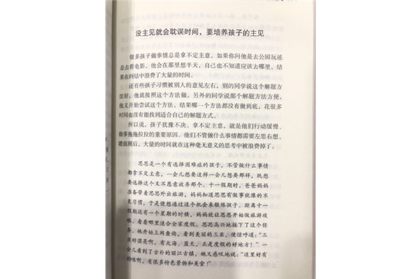 此书让孩子懂得如何管理自己和利用自己的时间:它从培养时间观念.营造时间氛围.纠正孩子不良习惯.制定时间计划.时间管理的纪律约束.培养孩子专注力以及如何让孩子最大限度的利用时间这七方面进行了阐述。目的就是为了帮助父母教会孩子如何建立时间观念,如何灵活自如地利用和管理时间。