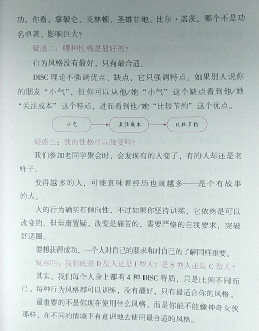 凡事必有4种解决方案!不要陷入自己的个人思维模式之中,要知道每个人身上都有4种DISC特质,对事、对人,每种特质的风格不同,解决方案也不同。然而,并没有*好的行为风格,只有*合适的行为风格。所以,如果你只会使用一种方法为人处世,那么一定要看看这本书,你面前的世界会豁然开朗。