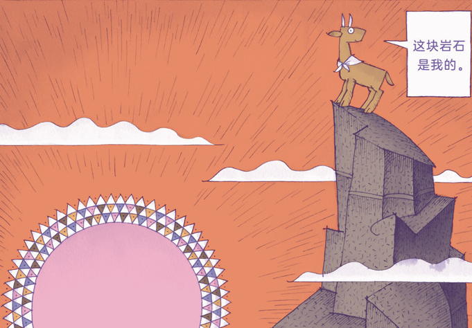 在一个普通的早晨,小山羊有了“自我意识”。 他开始以自我为中心,把自己与别人区分开,并且有了“拥有权”的概念。现在,他拥有一块岩石,这块岩石独一无二,这是他的岩石,除他之外的任何人,都不能爬到他的岩石上来!