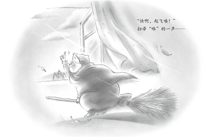 一场雪给杉树穿上了薄薄的白衣,阳光照在上面闪闪发亮。 魔女从床上下来,拉开窗帘。“哎呀,难怪我觉得冷,原来是下雪了。哇,真是冷啊!” 魔女打着哆嗦,缩了缩脖子,又钻进被窝。 她最讨厌冬天了。 因为一下雪,森林就会变得非常安静。整个寒冬,她都得孤零零一个人在这里生活。 但是,好强的魔女说: “嗯,森林安静点儿也不错啊!魔女本来就适合孤孤单单的生活。” 她窝在棉被里好一会儿,突然又一骨碌坐起来。 “对了,去空中遛遛吧!好久没出去了。整天待在家里,会越变越老哦!” 魔女拿起床边的魔法扫帚,把上面的灰尘拍掉。 她骑在扫帚上,两脚“咚,咚”地踏着地板。 “快啊,起飞喽!” 扫帚“咻”的一声…… 她应该飞起来的,可是,怎么回事呀?竟然浮不起来! “咦?真是太奇怪了!我太胖了吗?” 她更用力地“咚,咚”踏着地板,但是扫帚只飘浮起来一点点,便又“扑通”一声掉了下来。 “咦?唉……没办法,大概这把扫帚太旧了。这种烂扫帚,只能用来打扫院子。” 魔女重重地坐在摇椅上,打算好好想一想。 摇啊摇,摇啊摇…… 她一边摇一边想: “如果魔法扫帚不能飞到空中,那就只能拿去打扫院子了!如果魔女拥有的只是一把普通扫帚,会变成什么样呢?不能飞的魔女,还算是魔女吗?只不过是普通的老太婆而已!” 魔女突然站了起来,“不得了了!我的法力快要消失了!”