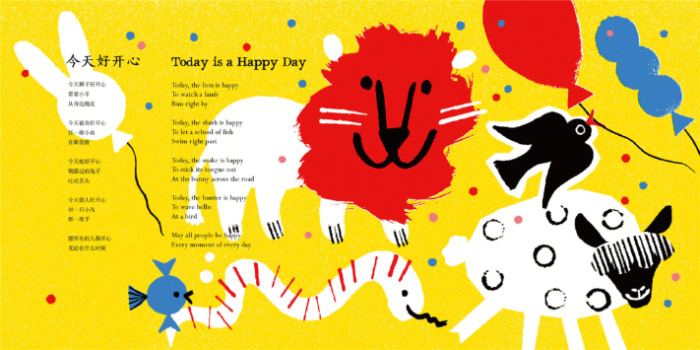 《今天好开心》是冰心儿童文学奖获得者巩孺萍联袂荷兰画家跨国打造中英双语童诗绘本,由美国斯坦福大学英文文学创作专业学者、诗人曹禅女士翻译而成。这是一册为3-10岁孩子打造的双语诗歌绘本。它引人入胜、图文并茂地展现了孩子们看待世界的方式,并鼓励人们以另一种方式理解世界。它们温暖、深情、幽默,*重要的是,这些童诗会鼓励孩子们去思考。它将诙谐与智慧巧妙融合,带给小读者们更多的思考空间,想象力和诙谐的童言稚语让人仿佛回到了无忧无虑的童年时光。它充分体现了儿童的心理和情趣。童诗绘本对于孩子的文学启蒙、语言训练、美育熏陶、想象拓展都有着不可估量的作用。