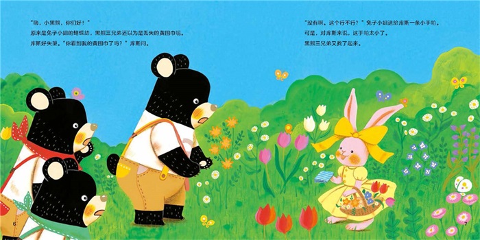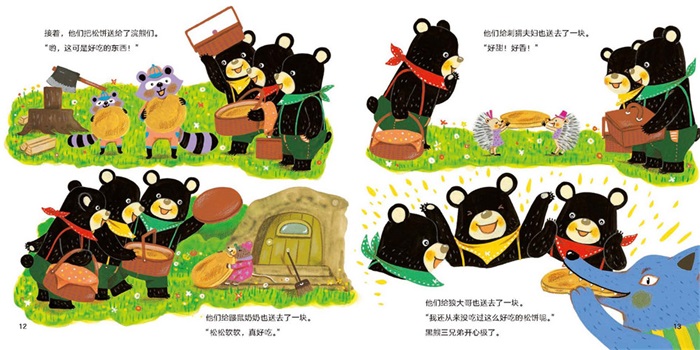 这是一套来自日本、针对2-4岁儿童的自主力养成绘本。故事围绕黑熊三兄弟和森林里其他小动物的生活日常展开,三兄弟之间团结、友爱:他们共同面对问题——帮忙寻找库斯的黄围巾;他们细致分工——打鸡蛋、做松饼、细心分装;他们胆大心细地准备雪国探险。同时,他们也愿意和朋友一起分享快乐:一块大围巾分成了无数块小围巾送给小老鼠、美味的煎饼和森林里的小伙伴们一起分享、和雪国的新朋友一起品尝好喝的热牛奶……这些没有“父母”参与的故事里,传递着三兄弟自主成长的力量。通过这些发生在黑熊森林里的小故事,小朋友在黑熊三兄弟身上能够学习“面对失去”的能力、分享与回馈的能力、认准目标积极探索的能力。