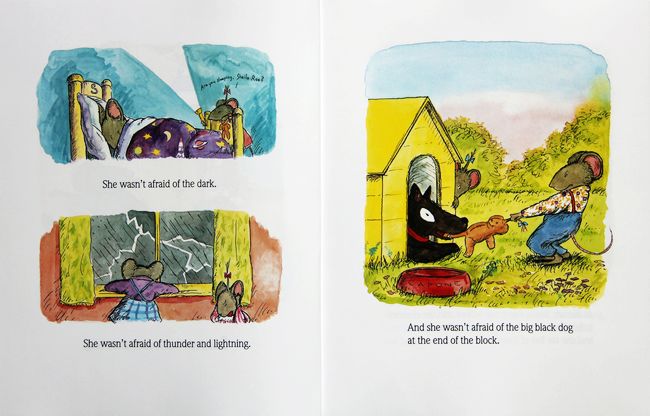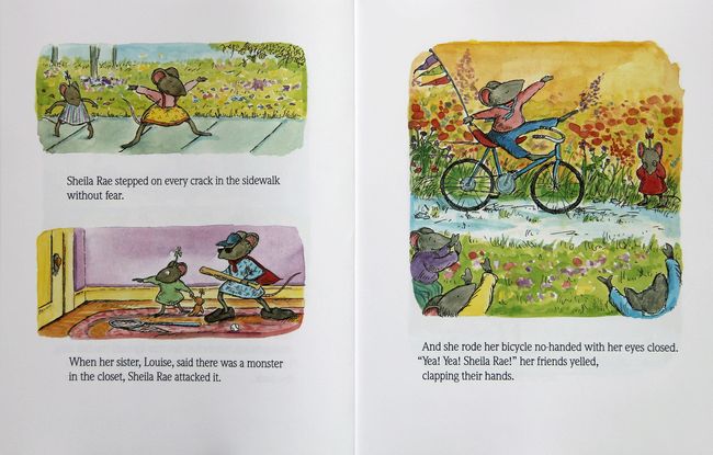Louise的姐姐Sheila Rae 总说自己最勇敢,不怕黑、不怕闪电、不怕大黑狗… 有一天Sheila想走一条新路回家,但是竟然迷路且嚎啕大哭,还好Louise前来解救她带她回家,从此Sheila不敢再嘲笑Louise胆子小。每个人都有自己的优点与缺点,这就是上帝造人的公平之处,勿骄傲、盼谦虚,宽广开拓的心胸才能获得更多真诚的友谊。
